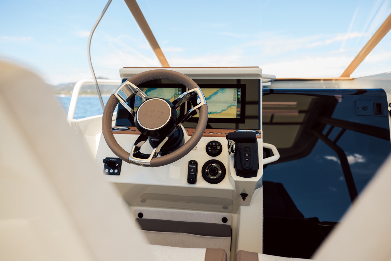Az Axopar AX/E nem csak technikailag kiemelkedő, de esztétikailag is új szintet képvisel: újrahasznosított anyagokból készült Mediterrana belső tér, moduláris kialakítás, és prémium részletek biztosítják a valódi luxusérzetet. A fedélzeti E-Brain™ rendszer intuitív vezérlést és valós idejű adatokat kínál, míg az Evoy mobilalkalmazás lehetővé teszi a távoli hozzáférést, töltésfigyelést és még sok mást.