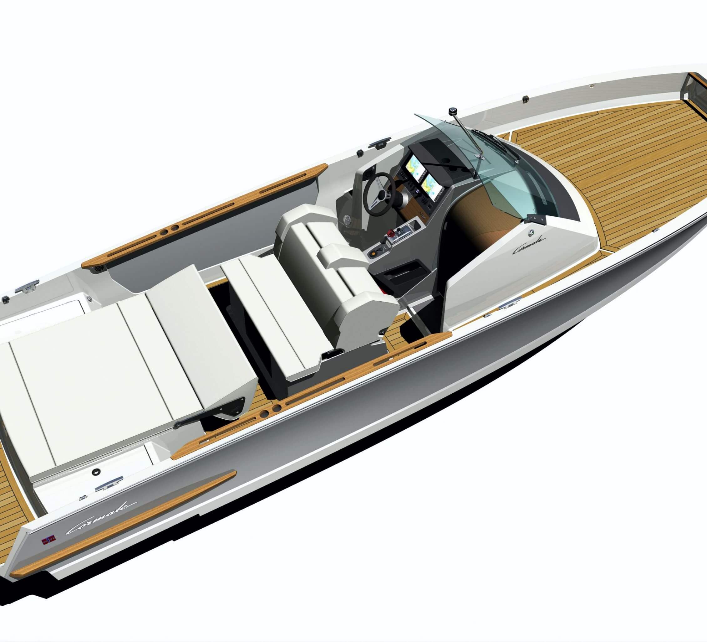 Erős motor, stabil test és nagy oldalfalak gondoskodnak a biztonságról, még hullámos vízen is. A kormányállás minden kezelőszervvel felszerelt: gáz, kormányzás, navigációs műszerek – mind kézreálló, könnyen elérhető.