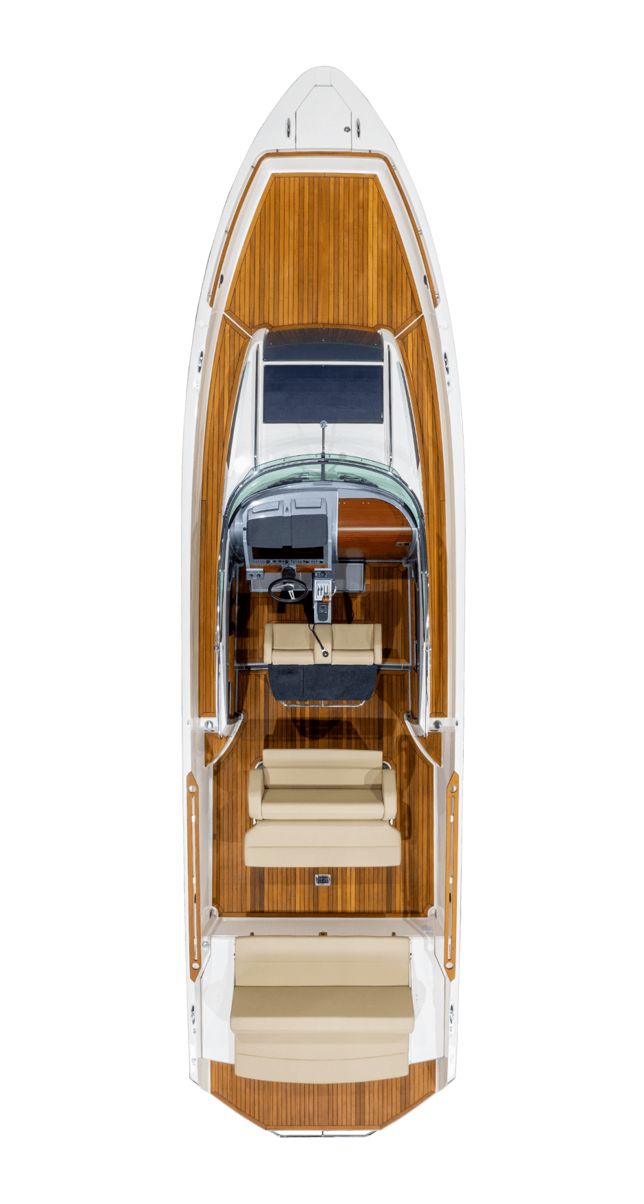 Az Explore 35 teljesen újragondolt koncepcióval érkezik, amely a kényelmet, a védelmet és a használhatóságot helyezi előtérbe minden hajózásrajongó számára. A T-top két változatban érhető el: egy automata, állítható modellben és egy hagyományos, rögzített verzióban. Az állítható T-top nagyfokú rugalmasságot biztosít – menet közben védelmet nyújt, horgonyzáskor vagy étkezéskor pedig kellemes árnyékot. Az újítások ellenére az Explore 35 továbbra is megőrzi kivételes teljesítményét, nagy hatékonyságot és lenyűgöző stabilitást nyújtva akár 50 csomó feletti sebességnél is.