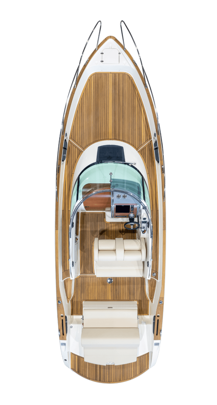 A T-28 az orrban védett napozóhelyet kínál, a tatnál pedig elegáns napágyat vagy aktivitási platformot. A hátsó ülés háttámlája több pozícióba állítható, így használhatod ülésként, nyugágyként vagy kényelmes pihenőhelynek. A T-28 többféle színben, motorral és felszereltségi kombinációval rendelhető, teljesen az igényeidre szabva.